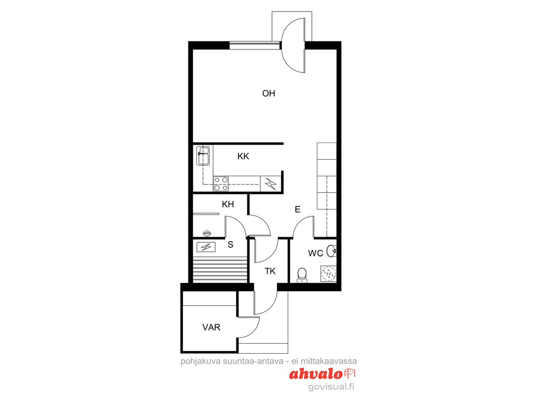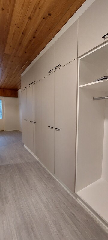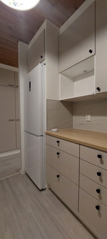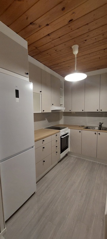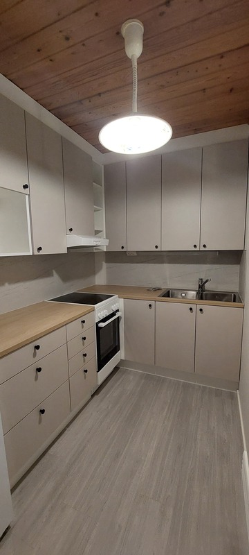 | Tehdyt remontit | Keittiön, wc:n ja eteisen kalusteet uusittu, sekä keittiö-olohuone väliseinän aukkoa suurennettu 2016, 2025: uusittu lattiapinnoite laminaatiksi, keittiökalusteet uusittu, lämminvesivaraaja siirretty vessaan. Keittiön kodinkoneet uusittu, eteisen, keittiön ja olohuoneen seinät korjattu ja maalattu. Tuulikaapin ovi karmeineen uusittu. Pesuhuoneen ja saunan silikonit uusittu. |