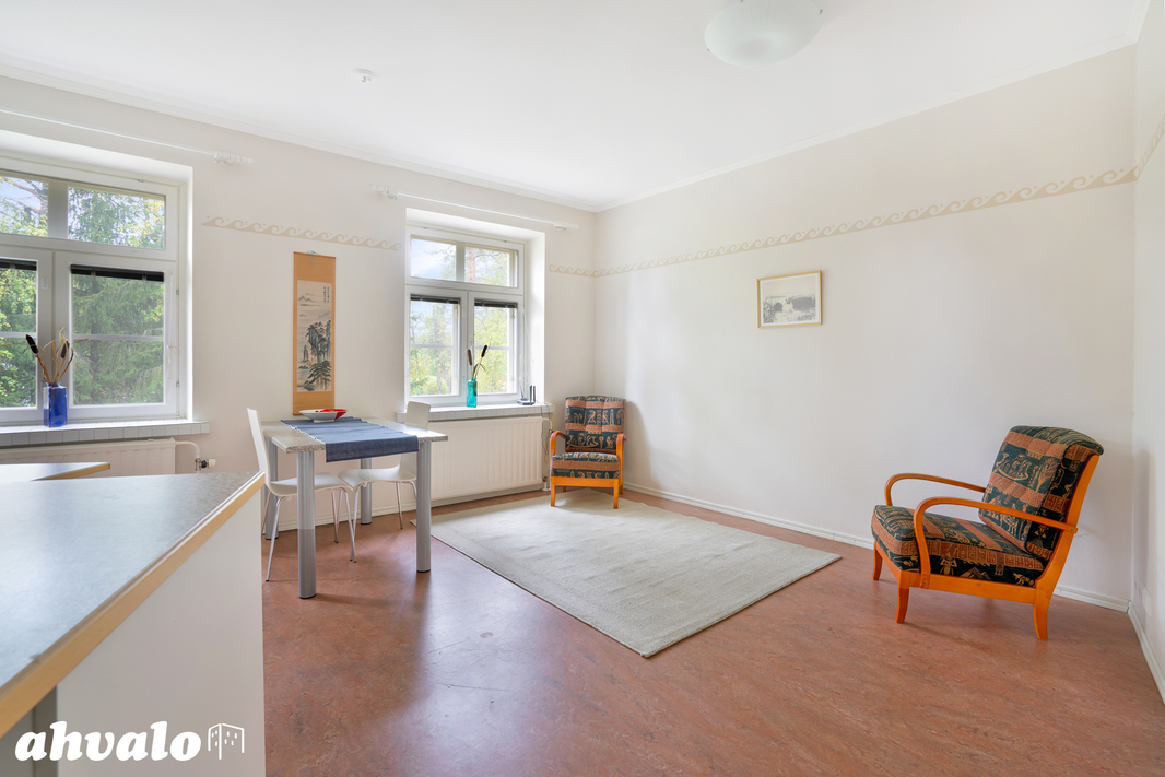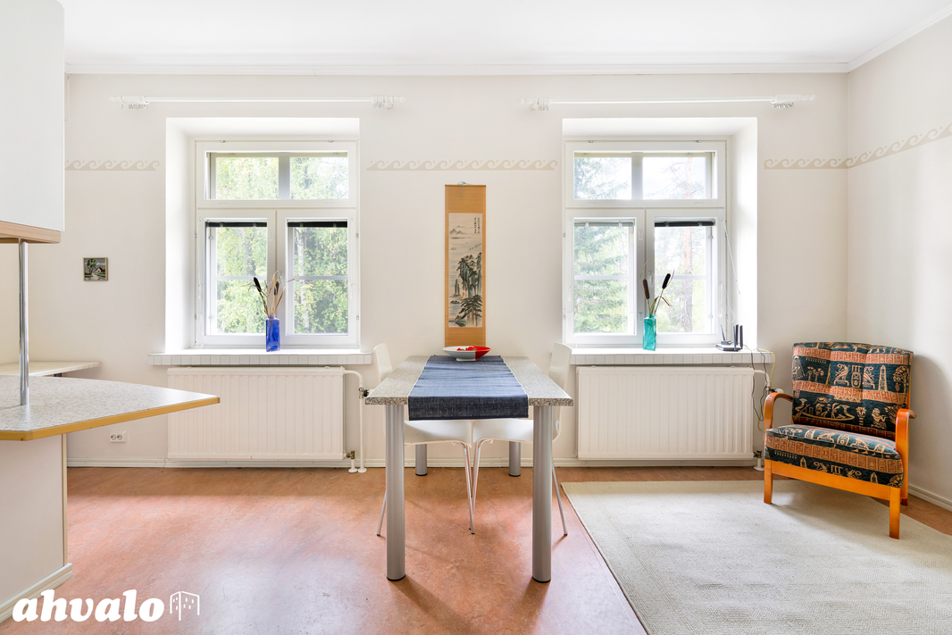 Onttolan rauhallisessa miljöössä, vanhan Rajavartioston kivitalossa odottaa hyväkuntoinen kaksio, jossa on oma sauna ja valokuituyhteys. Vuonna 1927 valmistunut rakennus huokuu arvokkuutta ja on vuosien varrella peruskorjattu kattavasti. Toisen kerroksen huoneisto tarjoaa toimivan pohjaratkaisun, jossa keittiö, olohuone ja makuuhuone muodostavat kodikkaan kokonaisuuden. Oma autokatospaikka ja heti vapaa asunto tekevät muutosta sujuvan. Tämä koti sopii niin ensiasunnoksi kuin sijoitukseen, tervetuloa tutustumaan!