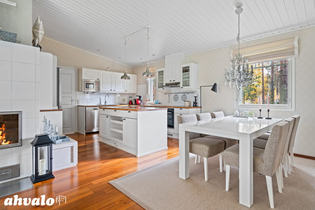 Lämpöä kotiin tuo varaava takka, käyttöullakko ja autokatos lisäävät käytännöllisyyttä. Mukava pihapiiri kutsuu leikkeihin. Päiväkodit, koulut sekä palvelut ovat lähellä.