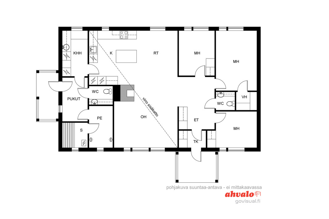 | Huoneistoselitelmä | 3 mh + tupak + khh + ph + s + 2 x wc + vh |