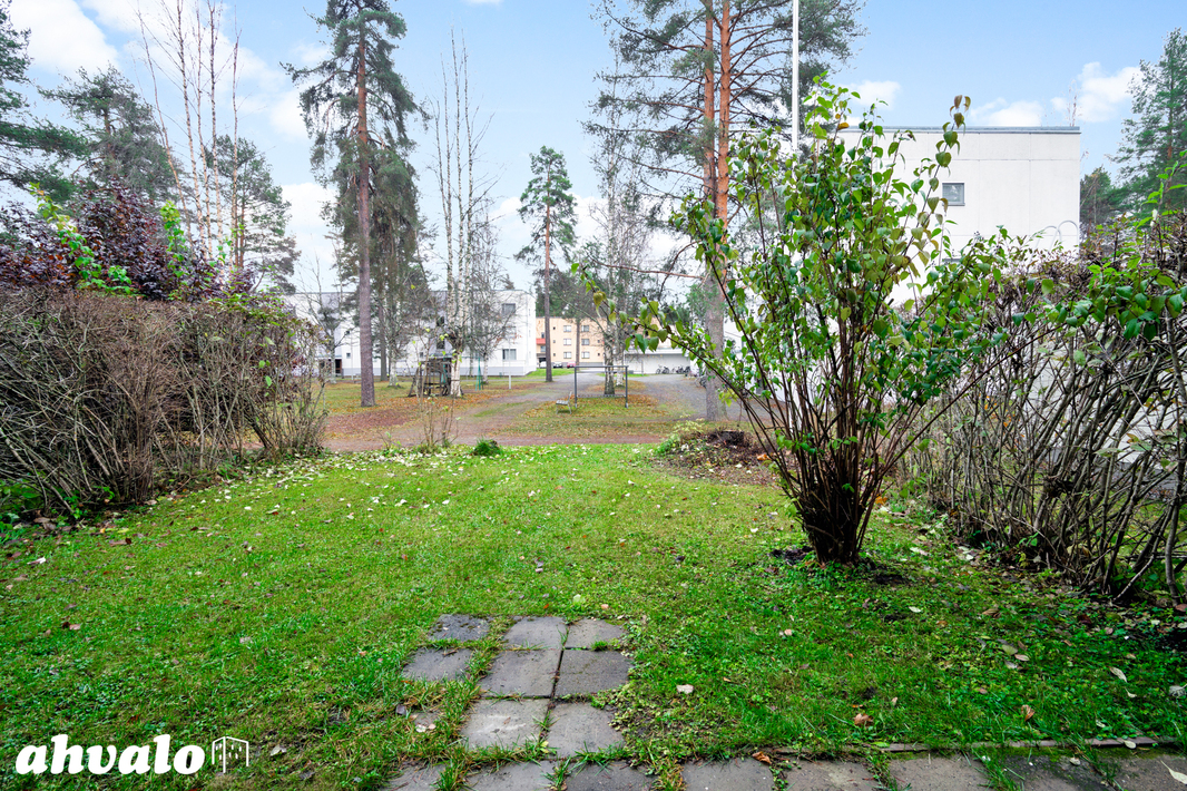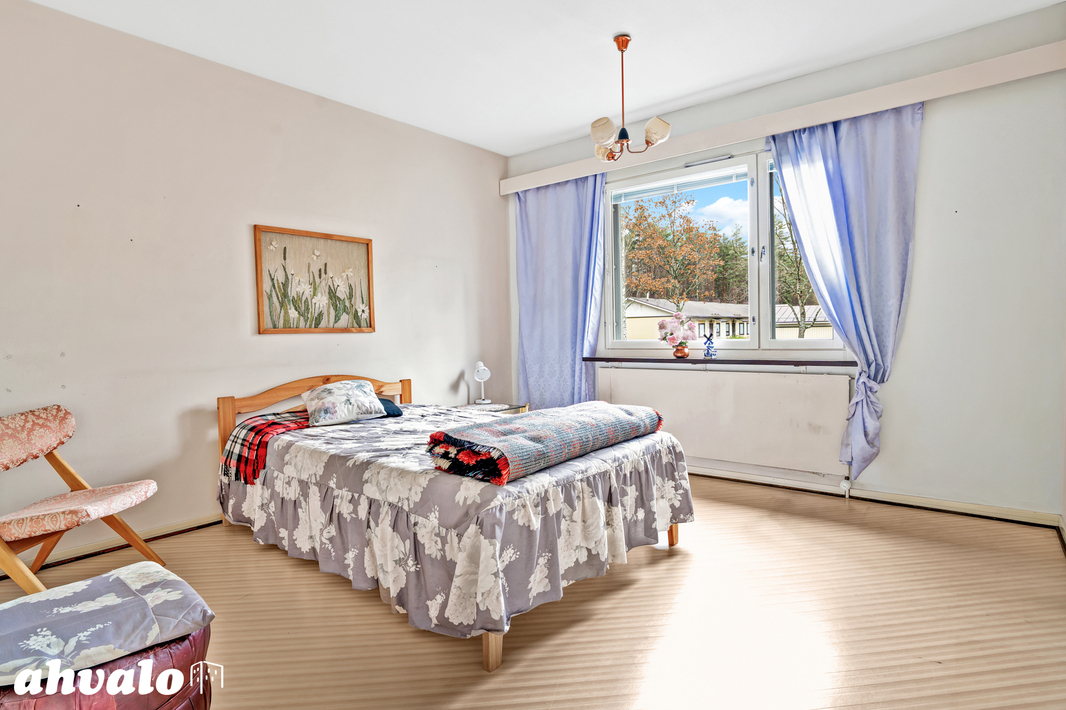 Tässä ensimmäisen kerroksen asunnossa on kolme tilavaa makuuhuonetta, olohuone, keittiö, wc ja juuri remontoitu kylpyhuone. Asunnosta löytyy jopa kolme vaatehuonetta. Talon takapuolella oma piha-alue, jonne käynti olohuoneesta.