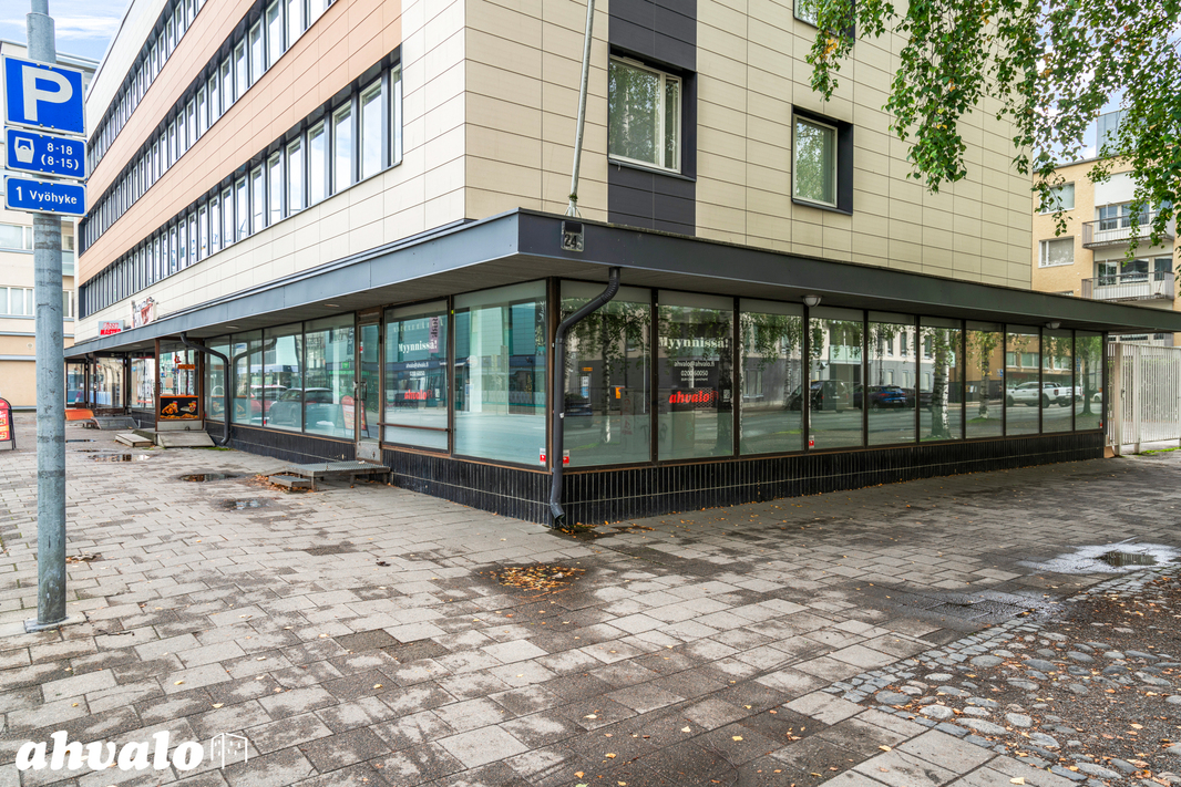 Liikehuoneisto sijaitsee Kirkkokadun ja Niskakadun kulmassa, käynti Niskakadun puolelta.