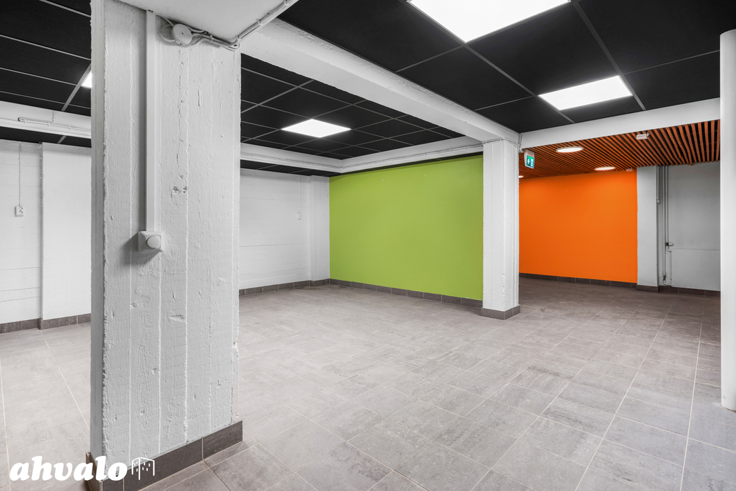 Huoneisto sisältää katutason 128 m² tilat, sekä taloyhtiön omistamat kellaritilat n. 80 m² ovat huoneiston käytössä (liike/varastotiloina). Remontin yhteydessä uusittu huoneistokohtainen ilmastointi, asennettu rasvakanava/rasvaimuri, asennettu uusi jäähdytys viilentävällä ilmalämpöpumpulla (kolme konvektoria). Myös lattiapinnat, alakatot sekä sähkökeskus uusittu.